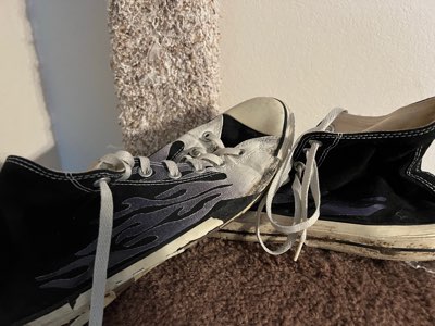 These fared better since I recall getting them new around 2003. Having an alternate color of hot-rod flames was sneeto. Oddly, the rubber walls/lining around the bottom solidified and turned brittle, breaking off. In Converse’s defense, I worse these way more often than the AWF pair because I only had about 20-30 pairs when these arrived so these were in rotation frequently compared to what I have. I scored another traditional hot-rod design during my birthday weekend so I wasn’t too sad to give purple fire to the trash. What I do miss was the Converse Store not having the recycling bin for your old shoes to be ground up into gym floors. Maybe I should ask my friend Sarah to make sure.