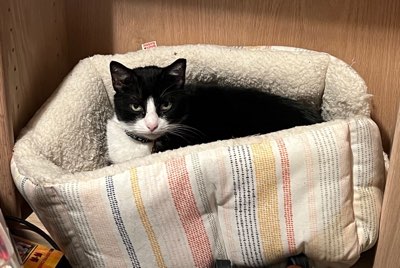 My office isn’t quite as organized as I’d like it, and I’ve been working on; more and more books are on the shelves I scored this Spring! But I remember how much he and Metztli made themselves at home on those bookcases. I put this unused cat bed at the bottom and Aggie took to it in the same way a duck does to water. Now he can keep an eye on me or nap with all the security he wants knowing his human daddy will be there to protect him from a xenomorph or the feral cats taunting him over their “freedom.” I love it. Reminds me of the better days in 2020 when I was working in the living room (I was the house’s sole resident) and Aggie would crash on the floor next to the desk. He slept in so many hilarious poses. Now to work on Isis, my oldest and most mellow kitty.