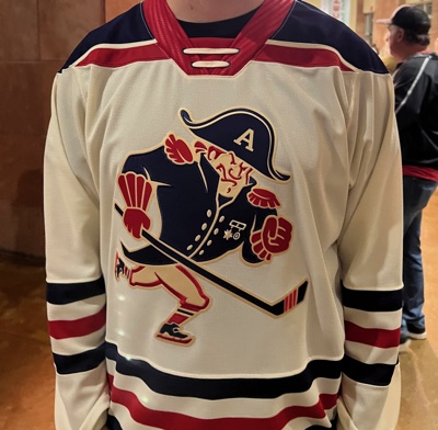 Spotted this at a recent Stars game! The wearer said it wasn’t an original but a re-release. It’s still pretty cool as it harkens back to when Milwaukee continued to tough it out in the IHL, competing alongside the AHL/NHL duopoly. The character definitely resembles an admiral much better the latter incarnations the franchise has gone with: a horrible design inspired by Tim Burton and now a skull thing which has more in common with pirates.