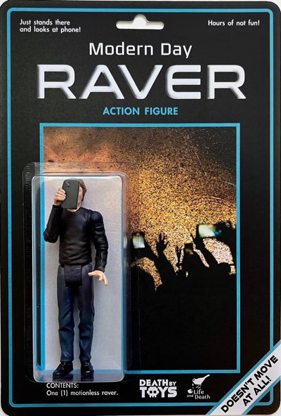 Along with conventional, commercially-made toys, I immensely enjoy stuff made as a joke or of an esoteric nature. The latter you can get easily through Super 7. I’ll bore y’all about my collection of them another day. Today, the focus is on the former via this funny guy in Chicago whose handle is Death by Toys. He makes them mostly by hand and much of the stuff I’ve seen is repurposed figures from commercial toys, aka kit bashing. I want to highlight this one which represents an ongoing problem highlighting a horrible side effect of technology known as the smart phone. Alamo resolved my ongoing peeve with assholes talking during a movie and the iPhone/Android took over with morons thinking its their right to be camera operators during the show. Woe to any of you stuck behind them as their fuckin’ phones obstruct your view since, “Oh, my friend couldn’t make it so I’m streaming for them!” Just keep it up dumbasses. It won’t be long before concerts implement this pain-in-the-ass practice I have endured lately with stand-up comedy where the venue forces you to put your phone into a magnetically-sealed case. You get to keep your phone but it’s trapped in the case. Why? The comedian doesn’t want people recording their routine, posting it on YouTube, FeceBook, TikTok, etc. because then others won’t come to see them or buy the album they’ll eventual release. And given how Amerikans especially think it’s their “freedom” or “right” to violate the terms and conditions on the tickets saying, you can’t record the show, it’s come to this. The honor system is for chumps thanks to these people. It’s also not exclusive to Mills and Z, a friend said Boomers were equally rude at an R&B concert. What pisses me off more with the comedy club’s policy is my Apple Watch has to be included in the case. Why? The ignorant staff told me at Joe DeRosa’s set, “You could record a voice memo.” I could. It would probably sound like crap but I respect comedians too much to do such a rude, selfish thing. Plus, the last time I checked, I’m not a douchebag as per the action figure shown above.
