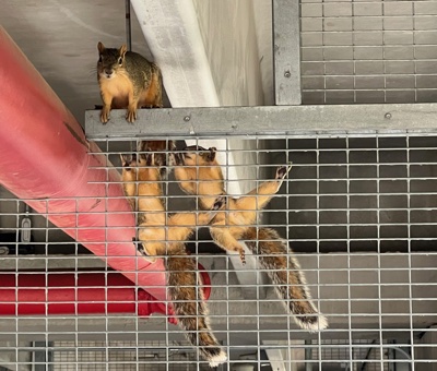 I know these aren’t cats but they are one of their nemeses! Especially the one outside my home office’s window who enjoys taunting Aggie, “You can’t catch me!” This trio I spotted on a bicycle cage. It seems mother took the two teens out for a patrol and much to her irritation, they got stuck because they’re not as skilled climbing on the fence element. They held perfectly still while I took the photo and mama got into a defensive stance. I did fear she’d launch herself at my face. When you’re not receiving a verbal warning from squirrels, that’s when you should worry. It ended well. They were all happily gone, probably in nearby trees within an hour.
