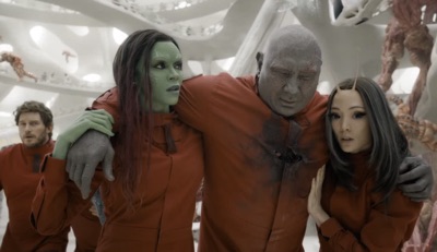 In the initial fight between Adam and most of Knowhere, Rocket is mortally wounded but nobody can save him from death because the High Evolutionary booby-trapped the vital organs with encryption. Thus, they need the key to unlock the code, then the high-tech doo dads they have to heal anyone can do their thing. So off the heroes go, enlisting the “new” Gamora to help; remember, their Gamora, like Loki, was killed by Thanos, this one is a paradox created by Endgame‘s time hopping and her memory is the same until the first film. She’s also the new boss of the Reavers, Peter’s old pirate gang.