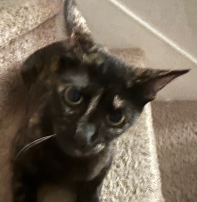 While my good friend Marian (I was misspelling it with an ‘o’ all this time!) is off on an important trip, I’m tag-teaming on making sure her animals are all OK. This is the only cat who socially interacts with strangers but then again, she likes anybody who provides food!