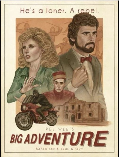 I first saw him on the annual HBO special showcasing new comedians when Carl Reiner was the host. Paul definitely stood out with Pee-wee Herman, a combination of prop comic and goofy personality with a little audience participation. I probably caught him with his periodic appearances on David Letterman’s NBC show and I figure MTV. Then Pee-wee’s Big Adventure came out late in 1985. My brother Brian saw it immediately and told me it was actually funny for its duration; I probably feared it would suck since a 10-minute skit doesn’t equal a movie, what ex-SNL alumni still don’t understand. Thanks to my exile to North Dakota, a mall theater in Dickinson was showing Adventure and I loved it. Danny Elfman doing the music was an added bonus; now we know Elfman’s a Louis CK-level piece of shit.