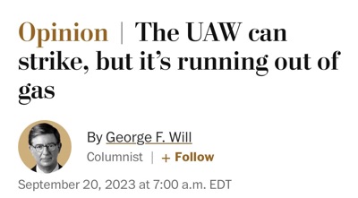 The Beltway Bullshitter who loves Baseball (his touchpoint with the common man despite being the One Percent’s mouthpiece), came down from his Ivory Tower after lamenting with Brooks over an $80 airport meal to lecture us about the UAW’s obsolete strike and its success. Nice to know the One Percent is getting their money’s worth from a newspaper only read by other Beltway Assholes, not the audience they think he can affect. As a “journalist,” I recall he might be a member a union called the Newsguild too.